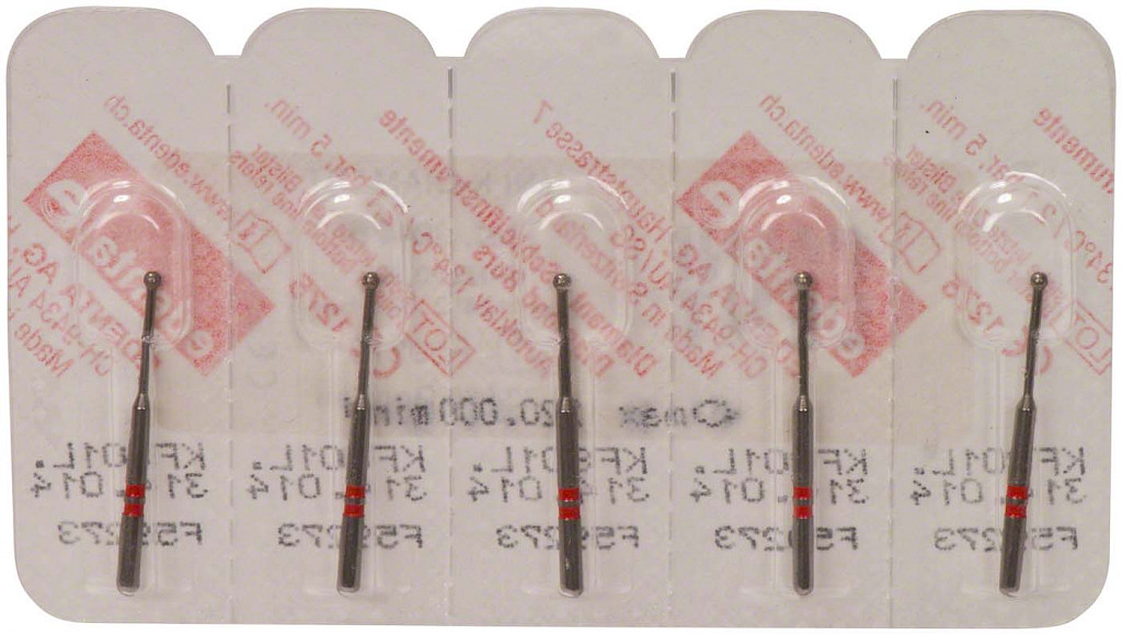 Packung 5 Diamanten rot fein, FG, Figur 001 Kugel, ISO 021
